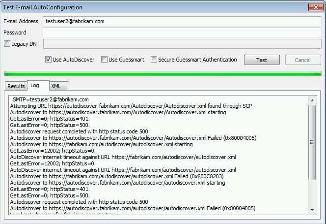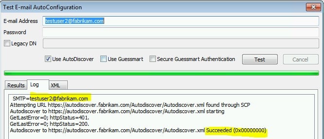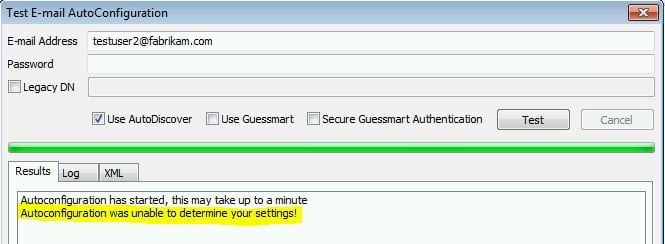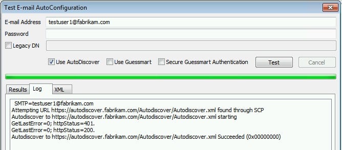 Der Test der Autodiscover-URL vom neuen Server aus zeigte jedoch, dass die Verbindung funktionierte: