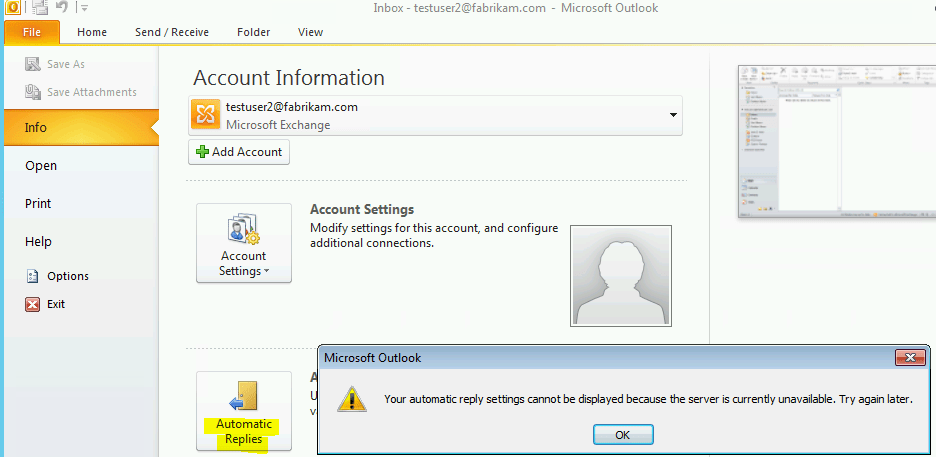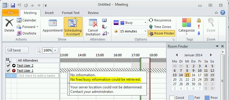 Abwesenheitsassistent und Frei/Gebucht-Informationen hängen von Autodiscover ab. Deshalb prüfte ich zuerst, ob Autodiscover funktionierte.