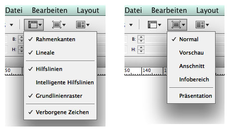 Achte zudem darauf, dass Rahmenkanten, Hilfslinien und Grundlinienraster eingeblendet sind.