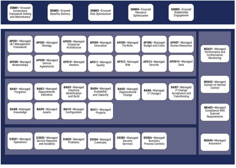 Mit der COBIT 2019 werden gegenüber der COBIT 5 weitere Managementziele (früher Prozesse) definiert: