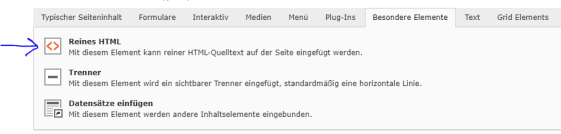 In Typo3 lege ich dazu auf einer Seite ein Inhalts-Element vom Typ «Reines HTML» an: