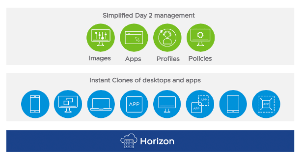 Horizon bietet die Möglichkeit, zustandslose, nicht-persistente Desktops in Sekundenschnelle bereitzustellen, was die Verwaltung mit One-to-Many-Bereitstellung und Updates ohne Ausfallzeiten zentralisiert und vereinfacht.
