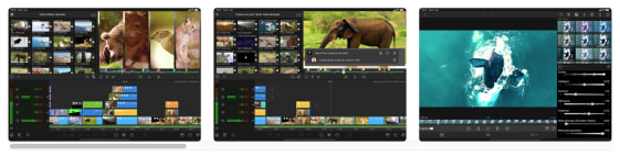 Professioneller Schnitt und Nachbearbeitung von Videos mit Auflösungen von bis zu 4K und Bildraten von bis zu 240 fps sind nun auf dem iPad möglich. Über den Projektmanager verwaltet man Projekte sehr unkompliziert und die gängigen Bildformate, wie 16:9, quadratisch oder hochkant, werden unterstützt. Über die Medienbibliothek importiert man das gedrehte Material und hat Zugriff auf lizenzfreie Musik und SoundFX, Videos oder Hintergründe, die durch das kostenpflichtige Abonnement von Storyblocks erweitert werden können. Mit sechs Video- und 12 Audiospuren sind der Bearbeitung von Videos kaum Grenzen gesetzt. Zur Gestaltung stehen viele Überblendungen und Effekte, wie Farbkorrektur inkl. Look-Vorlagen, Chroma Keying, Slomo-Effekte und Titelwerkzeuge zur Verfügung. Auch der Ton kann mit Filtern und EQ nachbearbeitet und mit Auto-Ducking gemischt werden. Nach dem Export können Filme direkt vom iPad mit anderen Usern geteilt oder auf Online-Plattformen hochgeladen werden.