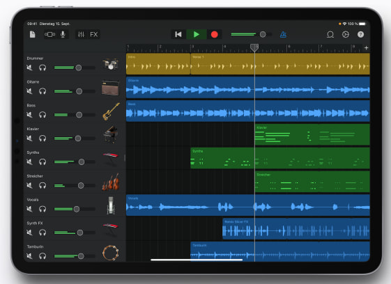 Die App Garageband ist bei iOS mit dabei und eignet sich ebenfalls, um Musik zu spielen aufzunehmen und zu teilen. Die Sound Library bietet eine Menge kostenloser Instrumente und Loops. Kreative Übergänge können mit Remix FX hinzugefügt werden. Mit dem Beat Sequencer stehen den Kreativen leistungsfähige Drum-Machines zur Verfügung. Ebenfalls enthalten ist mit Alchemy ein Profi-Synthesizer, mit dem beeindruckende Hip-Hop-, Indie-, Rock- und Pop-Sounds kreiert werden können. Alles, was ein Profi-Tonstudio braucht – eben to go.