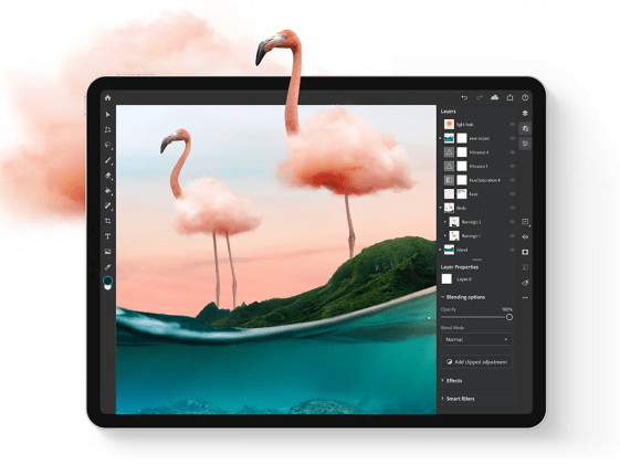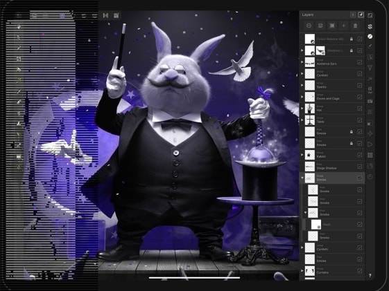 Das bewährte Desktop-Tool für Compositing und Retusche bietet auch auf dem iPad die wichtigsten Werkzeuge und Funktionen in einem vertrauten Arbeitsbereich. Alle Dateien, Pinselspitzen etc. werden dabei zwischen iPad und Desktop über die Cloud synchronisiert und können auch offline genutzt werden. Die Arbeit mit einer Vielzahl von Ebenen, Funktionen, wie Bereichsreparatur und Kopierstempel für die Retusche von Bildern, die Erstellung von Masken mit dem Pencil für das Compositing und die gewohnten Auswahlwerkzeuge in der bewährten PSD-Qualität stehen jedem iPad-Nutzer zur Verfügung.