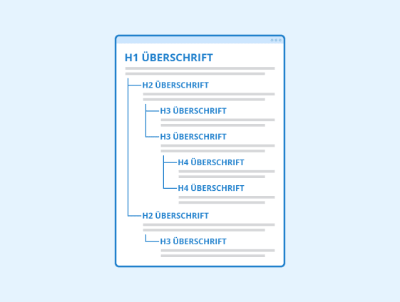 Die weiteren Titel (H2 – H6) sind Zwischenüberschriften und werden von den Suchmaschinen weniger stark gewichtet als der H1.