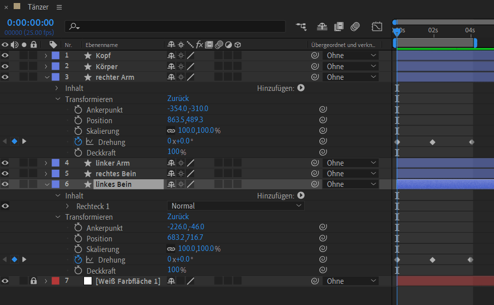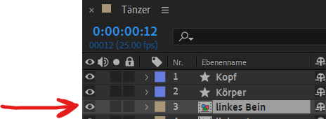 Damit sich ein Arm und ein Bein bewegen, habe ich diese beiden Ebenen animiert:
