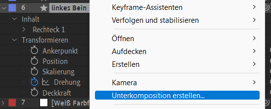 Schritt 1: Dazu klicken wir die gewünschte Ebene mit der rechten Maustaste an und wählen «Unterkomposition erstellen».