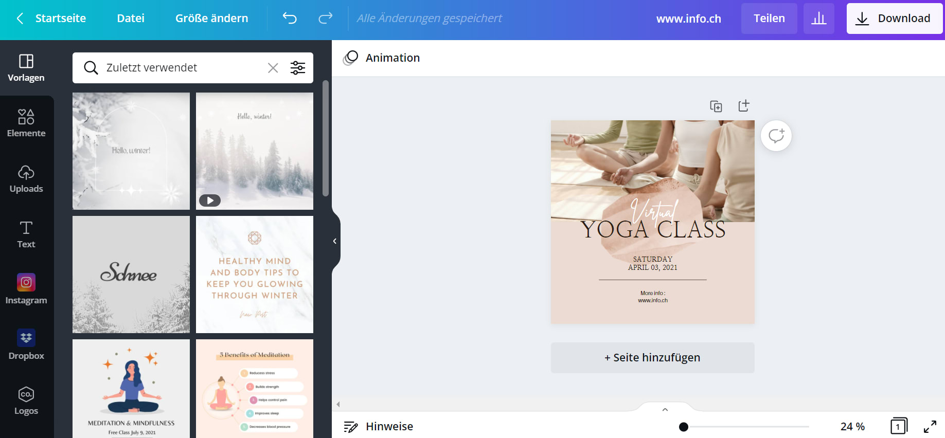 Dieses Tool eignet sich perfekt um deinen Feed kreativ zu gestalten. Dank tollen Design-Vorlagen kannst du deinen Account zu etwas Speziellem machen. Neben der riesigen Auswahl an Vorlagen hast du die Möglichkeit eigene Ideen und Medien einzufügen um deine Meisterwerke zu individualisieren.
