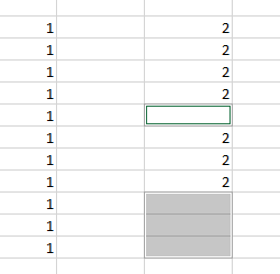 Dans l’exemple suivant, les valeurs dans la colonne sont identiques. La deuxième colonne comprend des cellules vides qui se distinguent par rapport à la première valeur de la colonne. C’est pourquoi elles sont marquées.