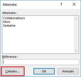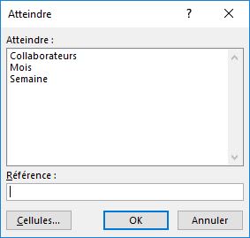 Avec la commande “Atteindre”, vous pouvez afficher de manière très rapide les champs nommés, les cellules vides et par ex. les cellules avec des mises en forme conditionnelles, avec des validités ou des formules.