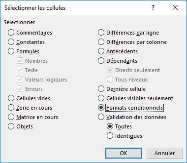 Il est également très pratique de pouvoir rechercher les cellules avec des mises en forme conditionnelles.