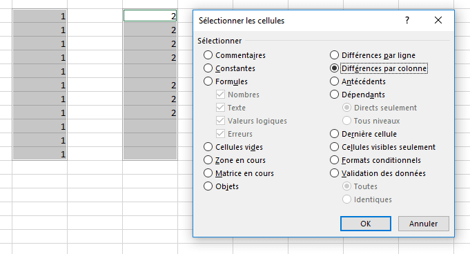 L’option “Différences par colonne” affiche toutes les valeurs différentes dans la colonne :