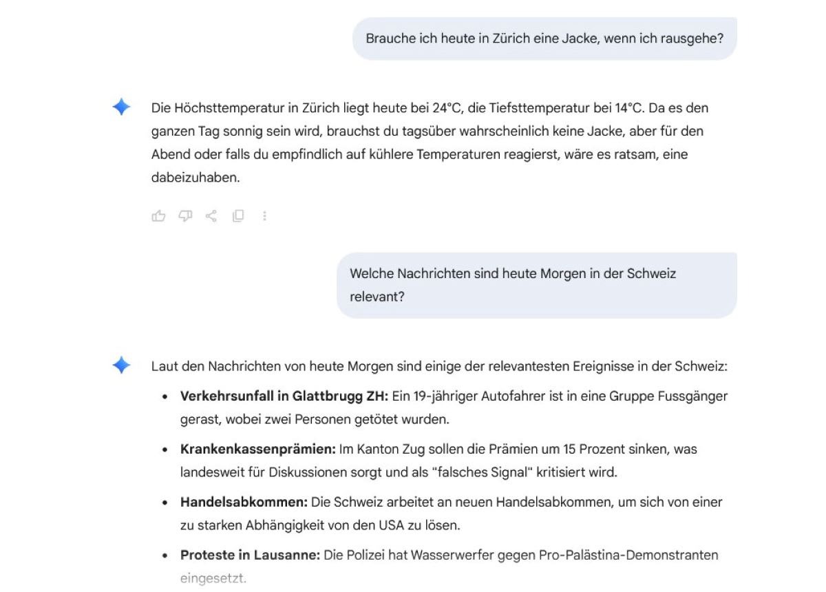 Wir können Gemini im Grunde jede Frage stellen, die Google-KI antwortet schnell und umfassend, wie sich im Test zeigte. Sie versteht die eingegebenen Fragen problemlos und antwortet verständlich darauf.