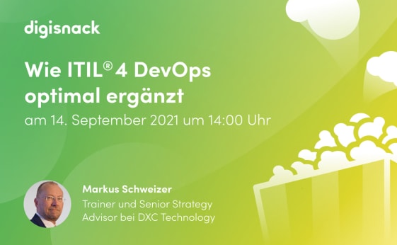 Möchtest du mehr zum Zusammenspiel von ITIL 4 und DevOps erfahren? Dann sieh dir jetzt das aufgezeichnete Webinar mit Markus Schweizer an. Zum Video BB